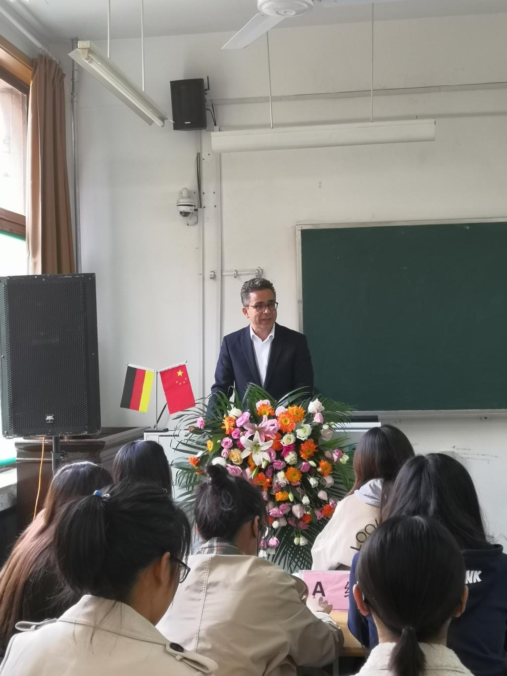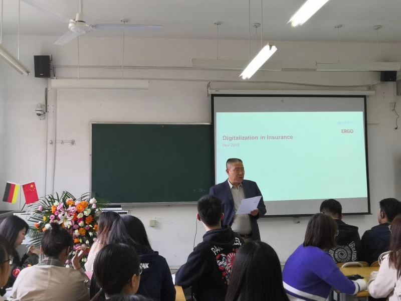 11月7日下午,赏金女王试玩 与德国安顾集团共同举办的保险数字化主题讲座在舜耕校区教学楼3306举行。德国安顾国际股份公司董事会成员、德国安顾集团大中华区首席执行官、德华安顾人寿保险公司副董事长Jürgen Schmitz(思勇明)先生作为特邀客座教授莅临本次讲座,德国安顾集团北京代表处首席代表朱航、德国安顾集团济南代表处代表王奇、赏金女王试玩 院长闫庆悦、副院长刘素春、以及50余名研究生共同参加讲座。本次讲座由副院长刘素春教授主持。