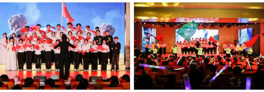 文艺汇演在石宇桐、徐晁曼等六名同学带来的歌曲串烧《青春就这YOUNG》中拉开帷幕。昂扬曲调唱响青春热爱,尽显朝气锋芒,瞬间点燃全场氛围。整场汇演以 “青春燃热血,壮志绘宏图”“共绘山河秀,同书岁月足”“承红色薪火,赴时代之约”三个篇章徐徐展开,节目形式丰富多元,内容精彩纷呈。