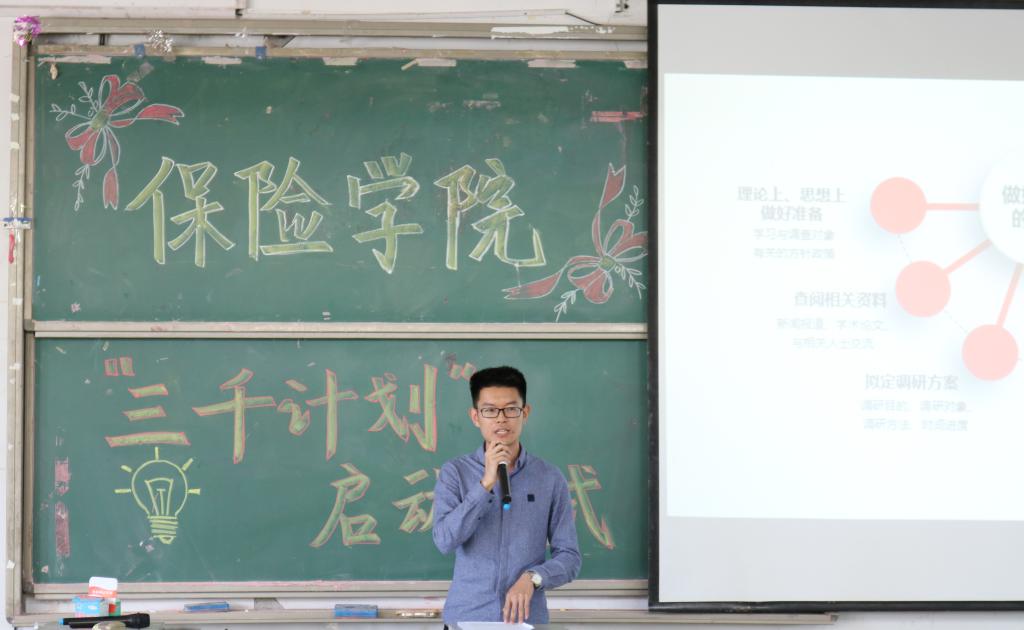 会议伊始,创新实践部副部长刘慧敏为大家介绍三千计划。所谓三千计划,就是进“千村、千社区、千企业”开展调研,对于大学生深入基层、深入社会,提高社会实践能力具有重要意义。三千计划调研项目可参加多种比赛,优秀团队有综测加分和物质奖励。刘慧敏同时列出了赏金女王试玩 近几年来获奖情况,直观数据表明赏金女王试玩 三千计划获奖逐年递增,前途大好。