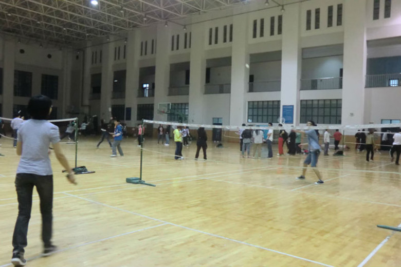 羽毛球比赛在明水校区体育馆举行,明水校区四个班的学生代表参加了比赛。