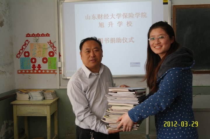 同学们兵分两路,第一组同学来到了章丘实验幼儿园,为小朋友们送去了许多生活用品和玩具,并与他们一起做游戏,合影留念,孩子们兴奋不已。临走时,孩子们都舍不得这些可亲可爱的哥哥姐姐们。孩子们红红的小脸,黑亮的眼睛,飞扬的嘴角,也让同学们感受到了此次活动的意义所在。另一组同学来到了章丘旭升小学,为孩子们带来了许多书刊、杂志,并亲手交予旭升小学的老师们。孩子们手捧着图书,脸上露出了喜悦之情。同学们还为孩子们解答了学习方面的问题,向孩子们讲述自己的学习经验、方法和生活经历。参加募捐活动的李浪同学说:“我们会把这样的活动一直搞下去,创造更多的机会让大家和孩子们进行交流,把手拉得更紧,让心贴得更近。”