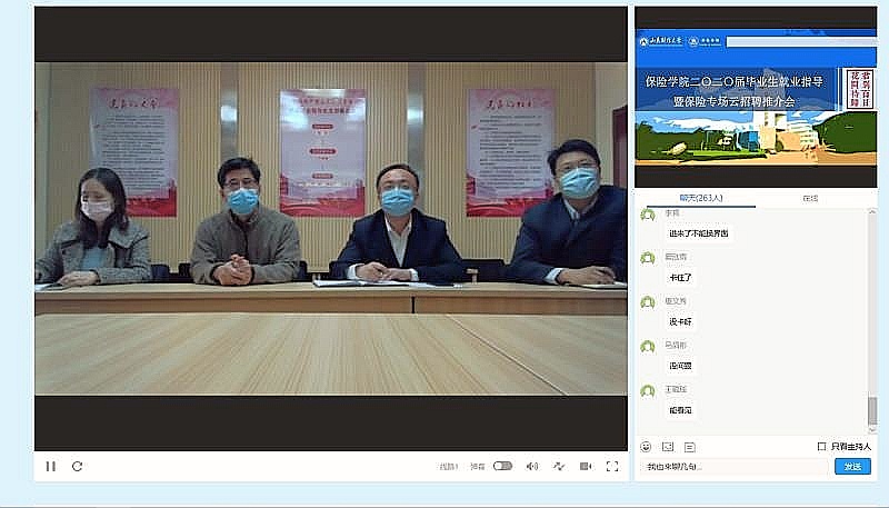 (通讯员 李智)春暖花开季,正当用人时。为进一步做好疫情期间就业指导与服务工作,积极应对疫情对2020届毕业生求职的影响,赏金女王试玩 与中国保险行业协会、山东省保险行业协会、学校就业指导处通力合作,组织 “不一样的云”——山东财经大学2020届毕业生保险专场线上双选会,并于4月14日上午利用就业指导处直播平台,召开学院2020届毕业生就业指导暨保险专场云招聘推介会。校就业指导处副处长周广春、办公室主任何峰,国际交流与合作处宋晓,赏金女王试玩 党委书记朱传武,副书记张娟,学院就业办孙磊,学院学工办王倩倩、李智以及学院全体毕业生参加了线上会议,会议由张娟主持。
