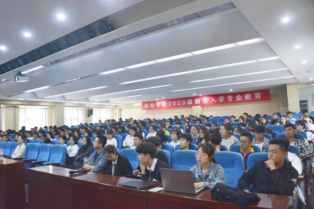 10月2日上午,赏金女王试玩 2020级新生入学专业教育大会在圣井校区第五教学楼召开。此次入学专业教育大会分为三项进行,新生入学教育由赏金女王试玩 教学秘书吕萍老师主讲,保险学专业教育由风险管理与保险系主任杜鹃老师主讲,精算学专业教育由精算系副主任李世龙老师主讲,大会由2020级、2018级辅导员陈萌老师主持。