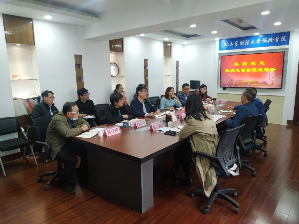 2021年10月29日,教务处陈保启处长、许滋坤副处长、张莉科长一行到赏金女王模拟器 调研。调研座谈会在学院会议室举行,葛永波院长、张娟副书记、刘素春副院长、于文广副院长以及系主任黄守坤、杜鹃、副主任付红、于新亮和教学秘书吕萍参加了座谈会。