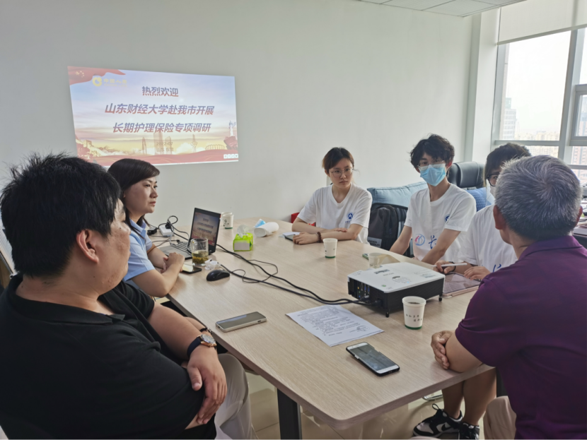7月8日上午,调研团队来到新华人寿保险股份有限公司山东分公司,由公司的四位领导接待了调研团队成员并回答了一系列问题,使调研团队了解了各个保险公司在长护险项目中的分工与承担的角色,与当前居民购买长护险的意愿等问题。陈经理向调研团队介绍:居民参保意愿仍有提升空间,下一步保险公司将继续全力配合、支持政府工作,进一步加大宣传力度,凸显医保惠民基因,争取让更多群众享受“便民、优质、高效”的医保服务。