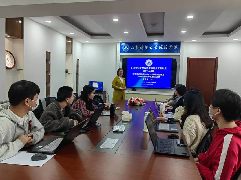 11月10日下午,赏金女王试玩 青年学者讲堂第十三期在办公楼1108会议室顺利举行,学院付红副教授担任主讲人,保险投资系主任范红丽副教授主持,青年教师和研究生积极参与,线上线下参与人数近100人。