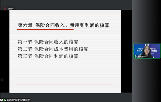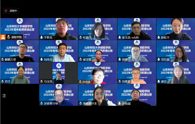 根据山东省教育厅、山东省教育工会委员会相关政策要求,为进一步加强高校青年教师队伍建设,引导青年教师加强教学改革创新,提高课堂教学质量水平,为青年教师搭建相互促进、共同提高的平台,赏金女王试玩 于11月24日下午举办2022年度青年教师讲课比赛。本次比赛特邀国际经贸学院副院长刘伟全教授、公共管理学院副院长罗微教授、经济学院副院长崔宝敏教授、赏金女王试玩 精算系主任黄守坤教授、保险系主任杜鹃副教授、保险投资系主任范红丽副教授以及《保险学》课程和教学团队负责人孙秀清教授担任评委专家。参赛的青年教师包括马玉秀、苏文、陈虹宇、张玉昌、史晓晨、张鹏成、刘春紫、廖芬和吴迪共九位教师。