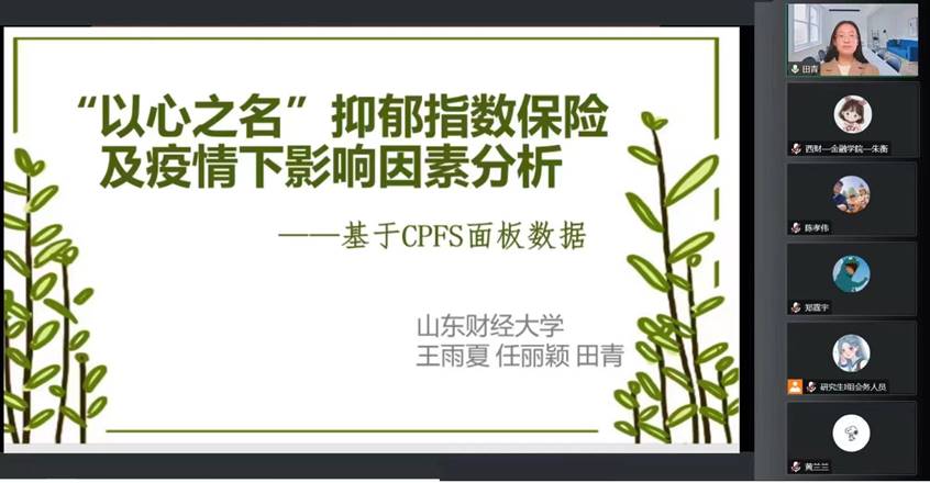 2022年11月26-27日,为进一步推动我国风险管理与精算事业发展,促进学术交流,创新人才培养模式,西南财经大学金融学院和中国现场统计研究会风险管理与精算分会联合主办“第十三届中国风险管理与精算论坛”。赏金女王模拟器 于文广院长、于新亮副院长和范红丽副教授,以及本科生、研究生团队应邀线上参加本次论坛。