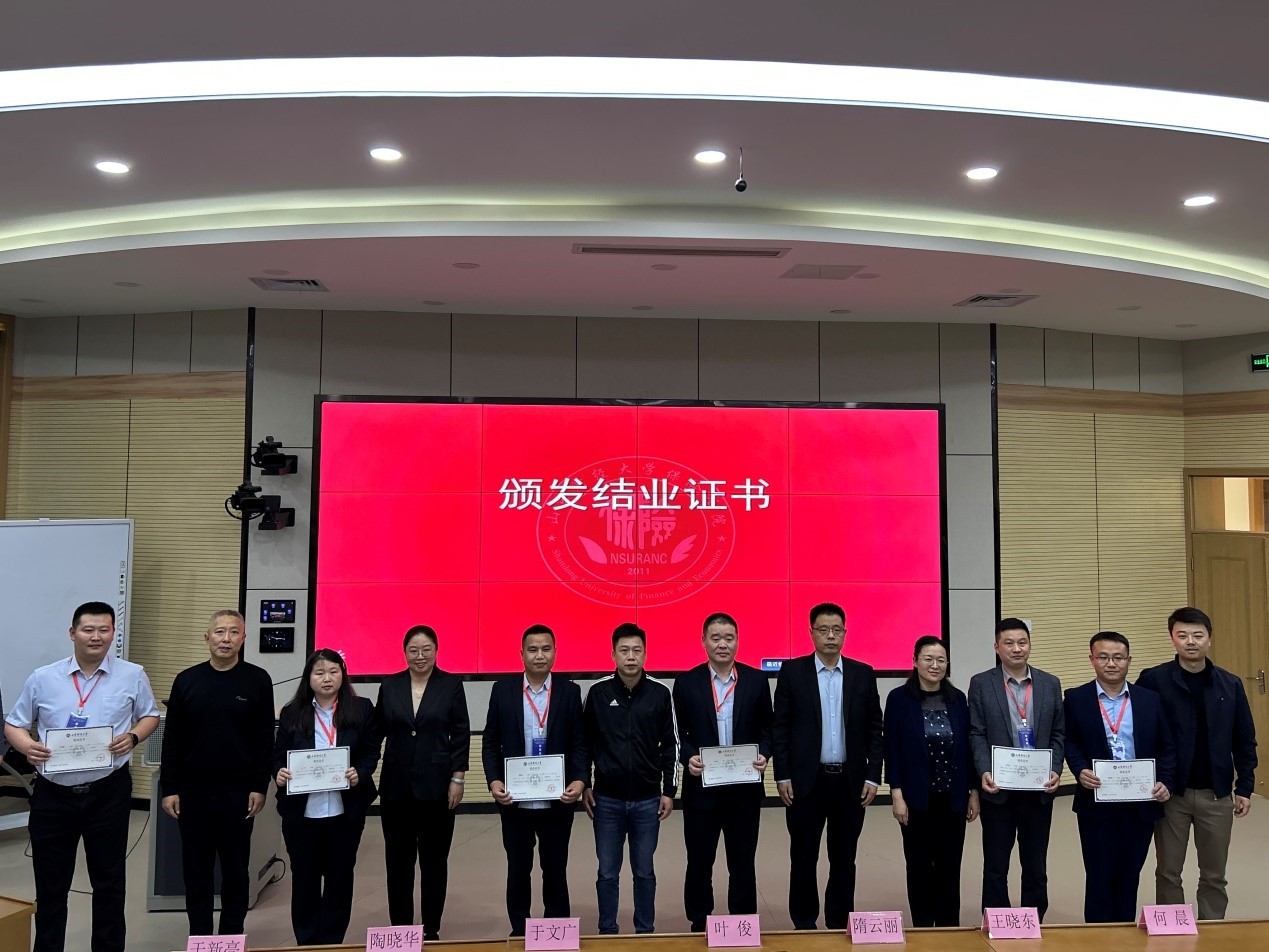 2023年4月14日下午,赏金女王试玩 举办的永安财产保险股份有限公司山东分公司“齐鲁新锐” 第一期英才培训圆满结课。50名培训班学员在为期5天的培训过程中系统性学习了包括二十大会议精神学习与解读、中国宏观经济形势、各类保险理论专业课和团队建设领导力培养等课程,并顺利通过结课考试,获得由山东财经大学颁发的结业证书。永安财产保险股份有限公司山东分公司负责人、党委副书记叶俊,副总经理、党委书记隋云丽,副总经理、党委委员王晓东,总经理助理、纪委书记、党委委员何晨,赏金女王试玩 院长于文广,党委副书记陶晓华,以及本期培训班全体50名学员参加仪式。仪式由赏金女王试玩 副院长于新亮主持。