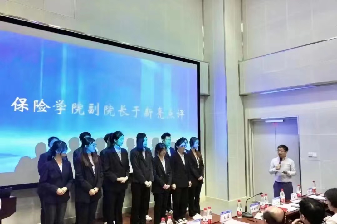 决赛答辩顺序由抽签决定,每组团队上台通过PPT的形式就产品的设计理念、可行性分析、保险责任、理赔方案、费率厘定以及前景展望等方面对作品进行展示汇报,评委针对问题进行问答。在展示环节中,各团队准备充分,不仅为评委老师提供纸质产品介绍以全面展示团队作品,还能在有限的时间里着重展示出团队产品的亮点,对于评委老师的提问也能够沉着冷静地回答,整个答辩环节精彩而又激烈,评委老师对各团队的保险产品提出了专业性的指导意见,使得各团队对自身产品的设计有了更加全面的思考。
