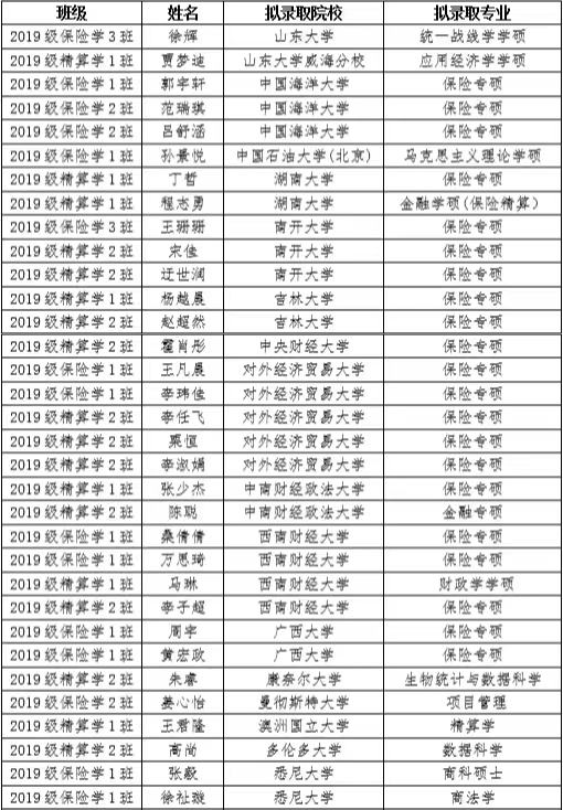 值得一提的是,赏金女王模拟器 第11届学生会主席、2019级精算学2班学生宋佳被南开大学保险专硕录取,这也是赏金女王模拟器 连续第三届学生会主席考入南开大学;23505宿舍的2019级保险学1班学生刘晋利、高连子、赵芯田、王竞卓全部考取研究生。