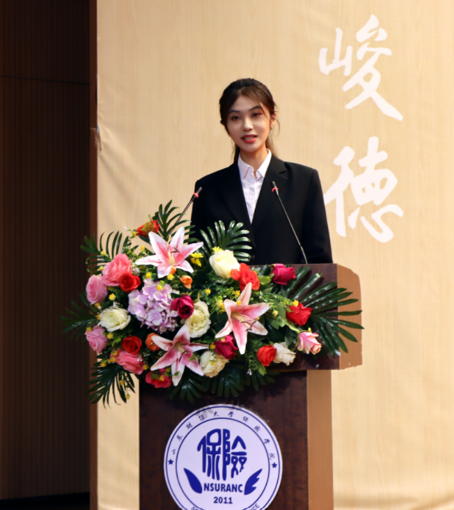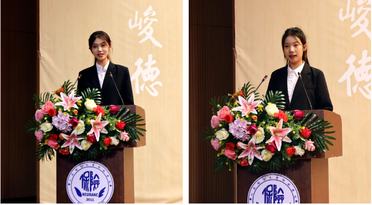 在校生代表、学院学生会主席团成员姜山结合自身成长经历分享了三点感悟,她希望新生同学能够心中有家国情怀,在担当中绘就青春画卷;眼里有星辰大海,在奋斗中擦亮青春底色;脚下有坚实土地,在拼搏中牢记脚踏实地,成为新时代真正的高素质复合型人才。新生代表刘宇晨表达了自己对学校和学院的真挚情感,并号召新生同学们怀揣梦想,携手并进,共同书写属于新时代青年的华彩篇章!