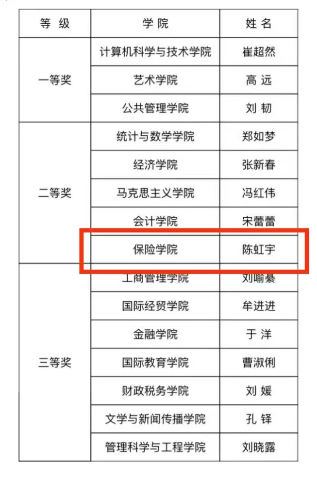 近日,根据《关于开展2023年度青年教师教学比赛的通知》要求,经个人申报、学院推荐、学校审核、专家评审,赏金女王模拟器 青年教师陈虹宇在2023年度山东财经大学青年讲课比赛中荣获二等奖。