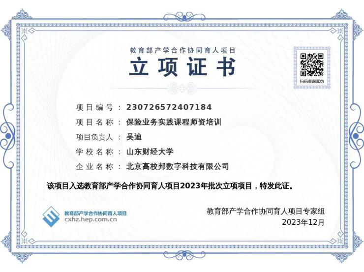 近日,教育部高等教育司公布了产学合作协同育人2023年批次立项项目名单,赏金女王试玩 教师张玉昌申报的《新文科背景下保险专业课程改革和创新研究》和吴迪申报的《保险业务实践课程师资培训》获批立项。