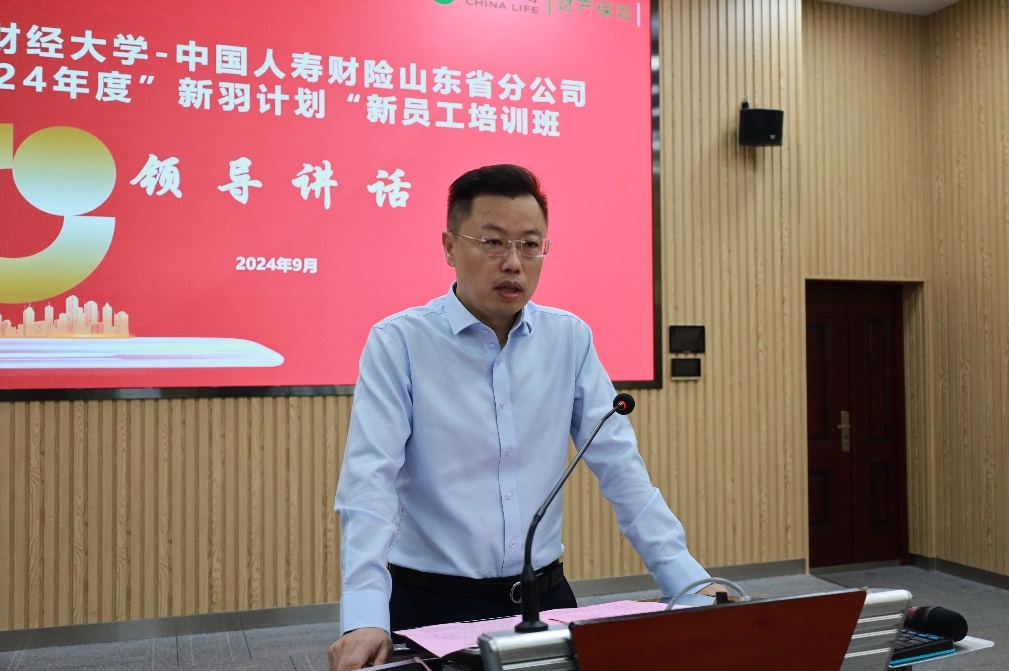 9月23日,赏金女王试玩 承办的中国人寿财险山东省分公司2024年度“新羽计划”新员工培训班正式开班。中国人寿财产保险股份有限公司山东省分公司人力资源部兼教育培训部总经理郭永浩,赏金女王试玩 党委书记张娟、院长于文广教授、副院长于新亮教授,以及来自中国人寿财险山东省分公司的33名学员参加本次开班仪式。仪式由中国人寿财险山东省分公司人力资源部张杰主持。