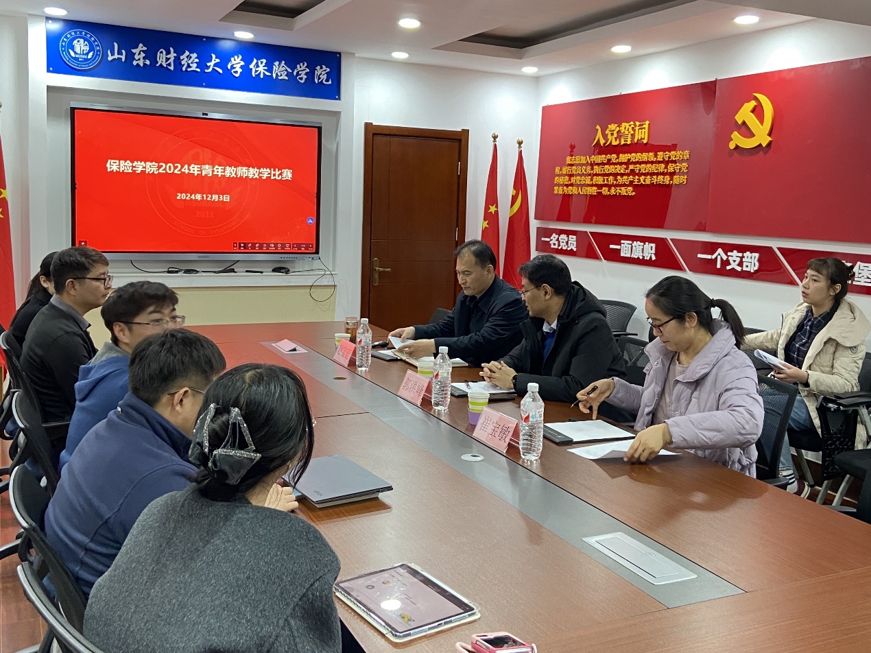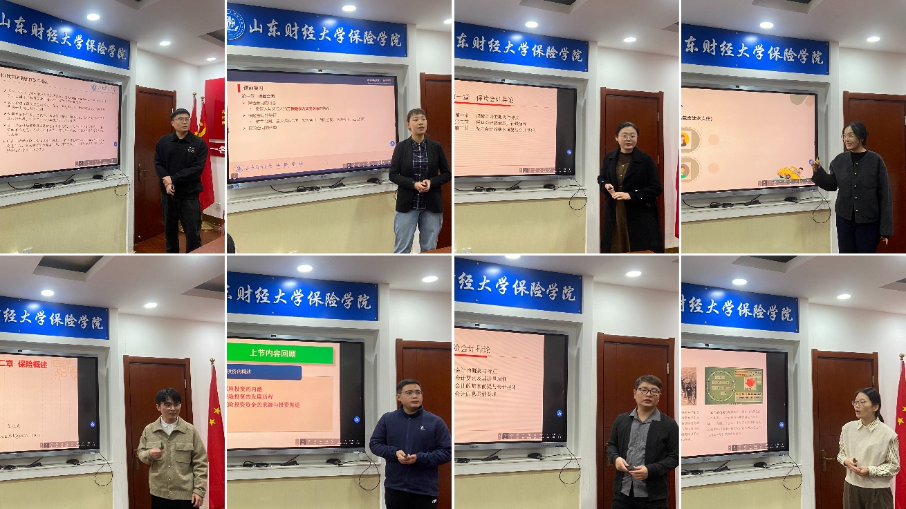 于新亮首先对三位评审现场指导表示热烈欢迎,并介绍了本次比赛的顺序、规则以及打分标准。随后八位青年教师依次就保险学、人寿与健康保险、保险会计、保险经济学和卫生经济学等多个专业核心课程的主要章节和知识点进行教学展示。展示结束后,三位评委按照评分细则进行打分,做简要点评并提出完善建议。