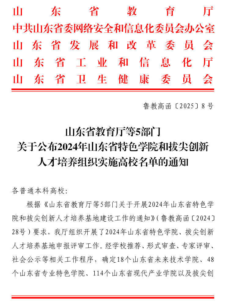 近日,山东省教育厅等五部门印发《关于公布2024年山东省特色学院和拔尖创新人才培养组织实施高校名单的通知》,赏金女王模拟器 申报的医养健康精算大数据产业学院获批。