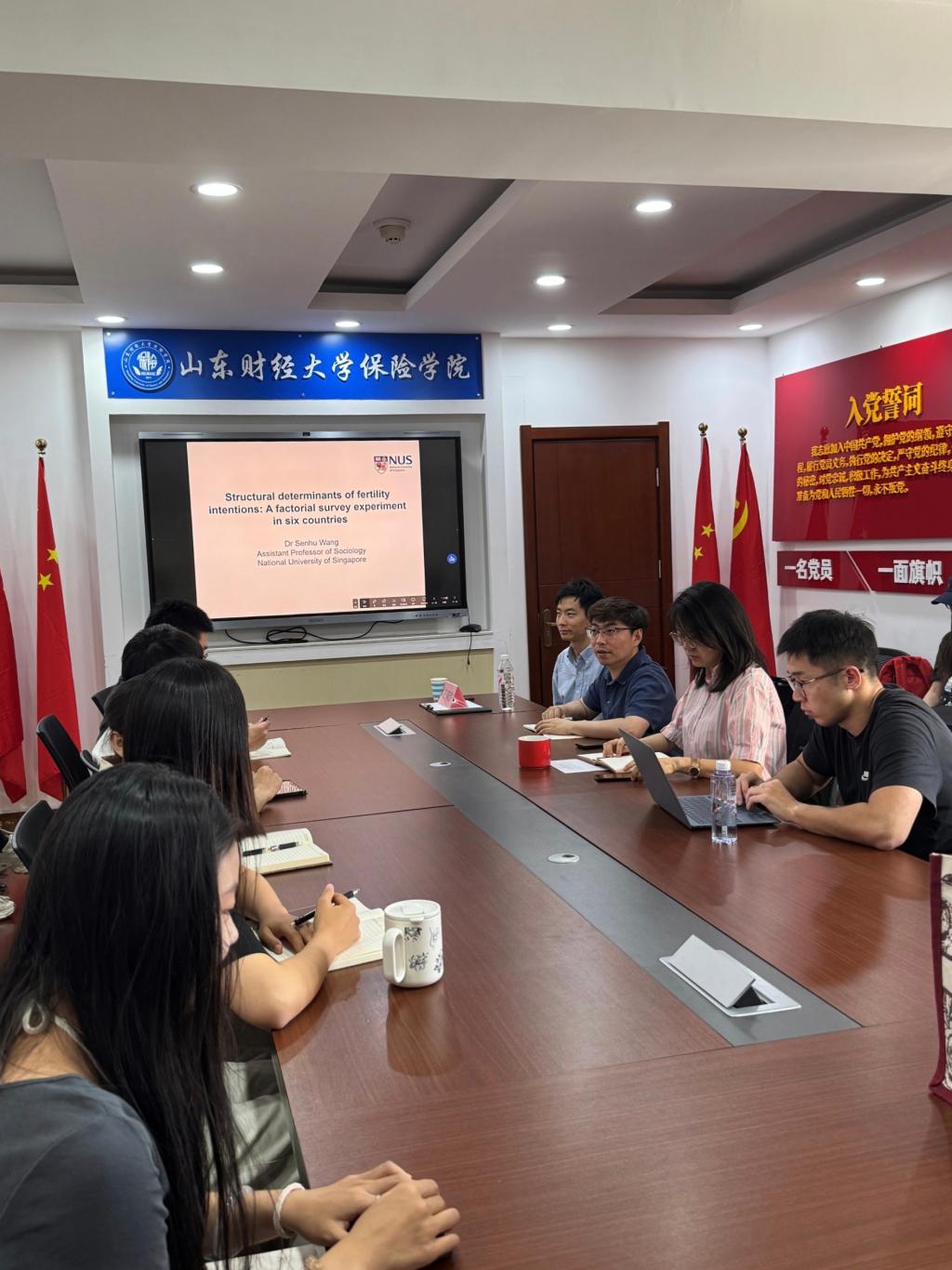 王教授以《Structural determinants of fertility intentions: A factorial survey experiment in six countries》为主题展开学术分享。王教授在本次报告中提出,在生育意愿研究中结构性制约因素,如抚养子女的财政成本、未来的经济不确定性和性别不平等,在塑造个人生育意图方面起着核心作用。然而,以往的研究往往孤立地考察这些因素,这种分散的方法限制了理论整合和有效政策措施的制定。本文通过使用一个因子调查实验,将关于结构约束的五个主要理论观点整合到一个统一的框架中,通过操纵每个约束的程度,以评估其在形成生育意图中的相对重要性。该实验在六个不同体制背景的国家进行:美国、西班牙、瑞典、中国、韩国和日本。这种方法能够检查每个理论上确定的约束的意义在不同环境中是如何变化的。问卷调查结果表明,经济因素,特别是抚养子女的财政负担和未来经济状况的不确定性,是最关键的结构性制约因素。其次是工作场所和代际家庭支持不足,以及性别不平等。相比之下,与生育有关的社会规范和价值观被认为影响最小。此外,这些结构性限制的相对重要性因性别和国家背景而异,反映了文化规范、家庭动态和体制框架的差异。通过将多种观点整合到一个统一的框架中,这项研究强调了经济因素在决定生育意图中的主导作用,即使在与人口转型和个人主义价值观相关的更广泛的文化转变中也是如此。