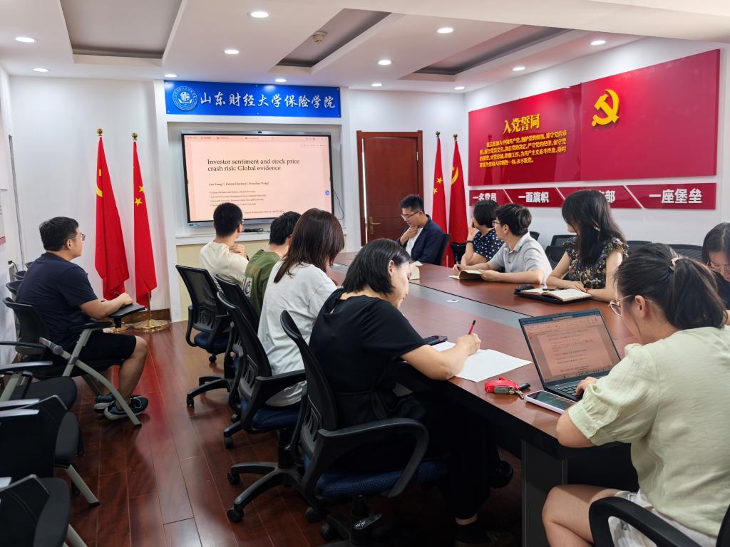 王老师以《Investor sentiment and stock price crash risk: Global evidence》为主题展开学术分享。王老师基于35个国家股票市场的微观公司层面和宏观市场层面的数据,全面分析了投资者情绪对股价崩盘风险的影响。实证结果表明,公司层面投资者情绪与崩盘风险呈正相关,而市场层面投资者情绪与崩盘风险呈负相关。当公司层面的投资者情绪呈现负向时,股票崩盘风险更高;而正向的市场层面的投资者情绪对股票的崩盘风险又呈现了一个调节的作用。研究进一步发现,在分别检验发达市场、新兴市场及个别股票市场时,上述关系存在显著异质性。王教授从各个国家市场的文化维度、市场诚信度以及智力和教育因素三个视角对这种异质性进行了解释。