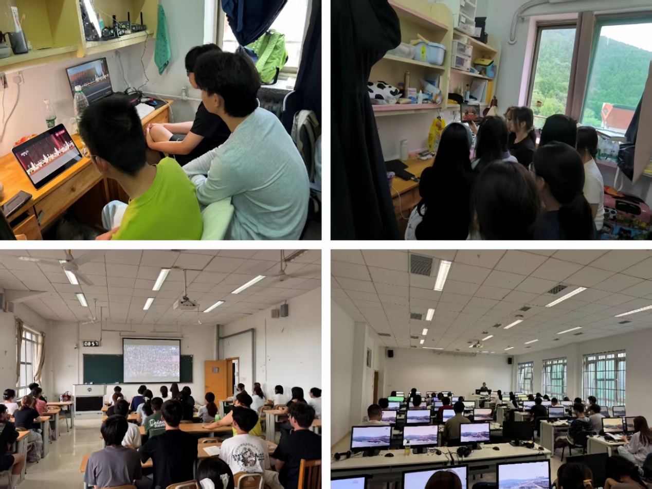 师生们在屏幕前热血沸腾,为“中国制造”的钢铁洪流与钢铁纪律自豪,内心对于国家强大的兴奋溢于言表: