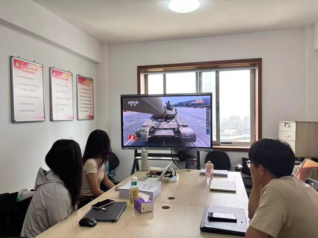 学院党委副书记 王斐斐:当阅兵的方队整齐划一地走过天安门广场,当先进的武器装备依次亮相,我的内心被深深震撼。那磅礴的气势,是祖国强大的象征。作为新时代的见证者,我们要铭记历史,更要用奋斗的姿态去守护盛世,扬我国威,兴我中华!