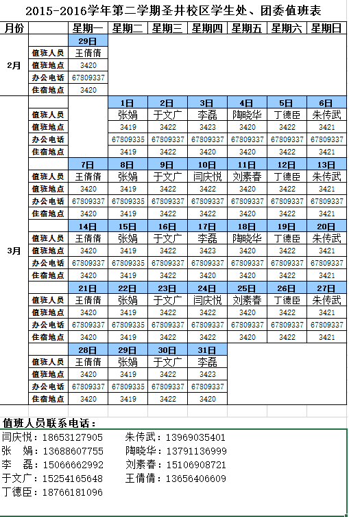 赏金女王试玩 2015-2016学年第二学期圣井夜间值班