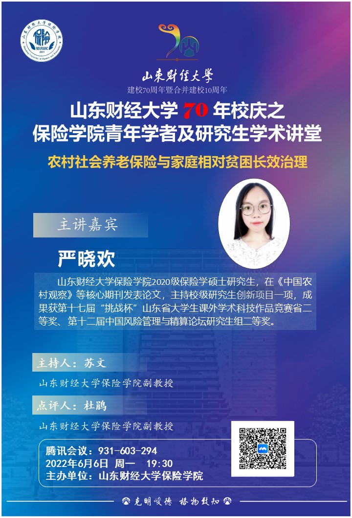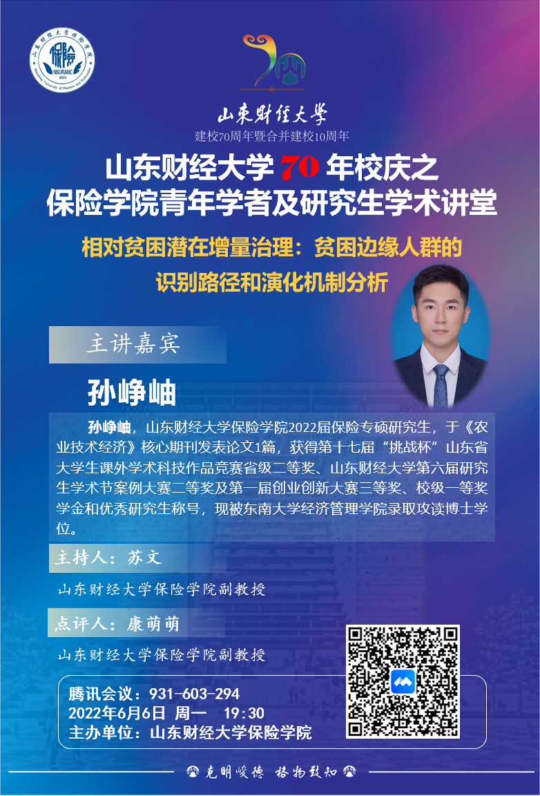 山东财经大学70年校庆之赏金女王试玩 青年学者与研究生学术讲堂(第十一期):相对贫困衡量与保险保障专题研究