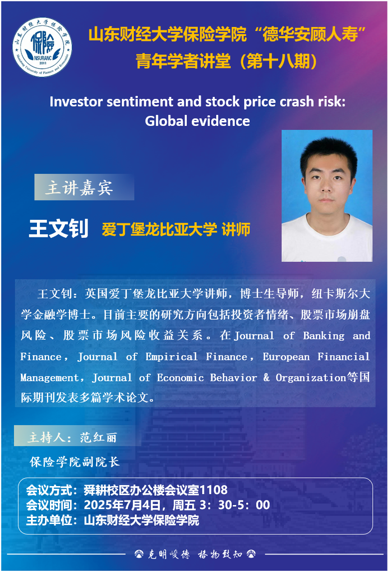 赏金女王试玩 “德华安顾人寿” 青年学者讲堂(第十八期),7月4日,15:30,报告人:王文钊