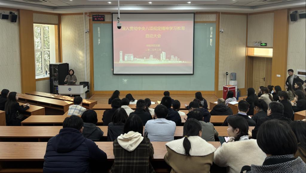 为深入贯彻中央八项规定精神,3月20日下午,赏金女王试玩 党委在舜耕校区第二阶梯教室启动部署深入贯彻中央八项规定精神学习教育。大会由赏金女王试玩 党委书记张娟主持,学院全体党员参加。