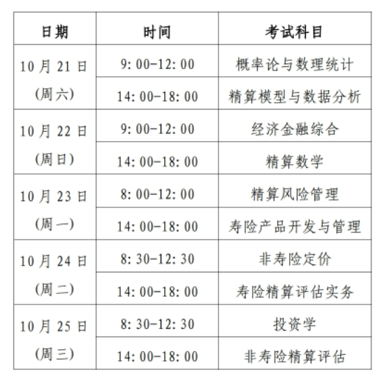 2023年中国精算师职业资格考试时间安排